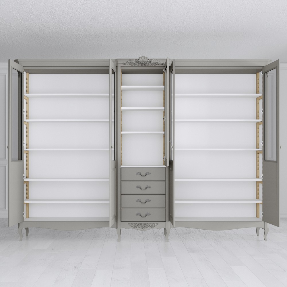 - Отделка: Серо-бежевый с серебряной патиной