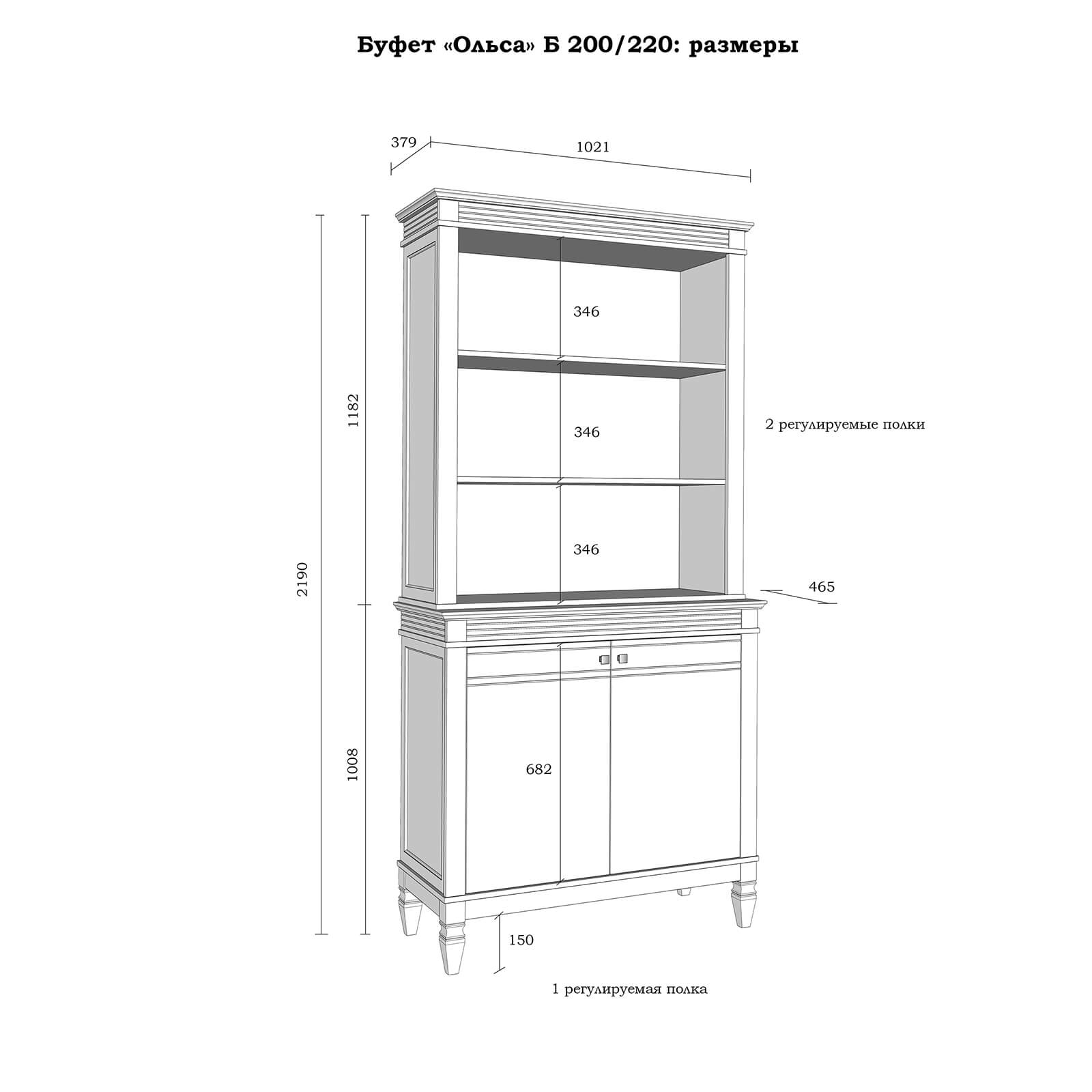 Буфет «Ольса» 200/220 предназначен для хранения посуды, книг, сервизов и любых других полезных вещей.