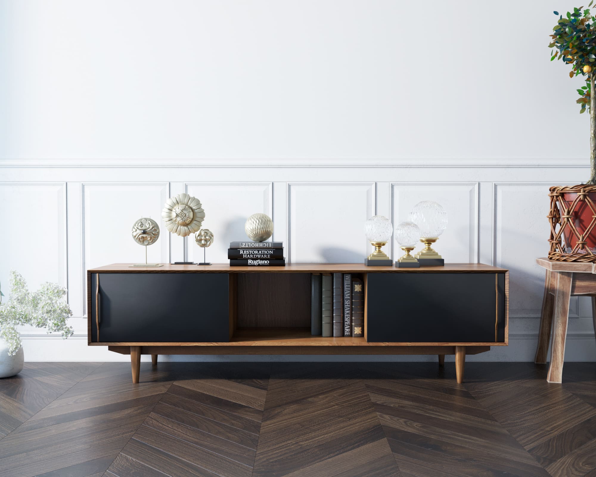Консоль под TV массив дерева в Скандинавском стиле "Bruni Black"