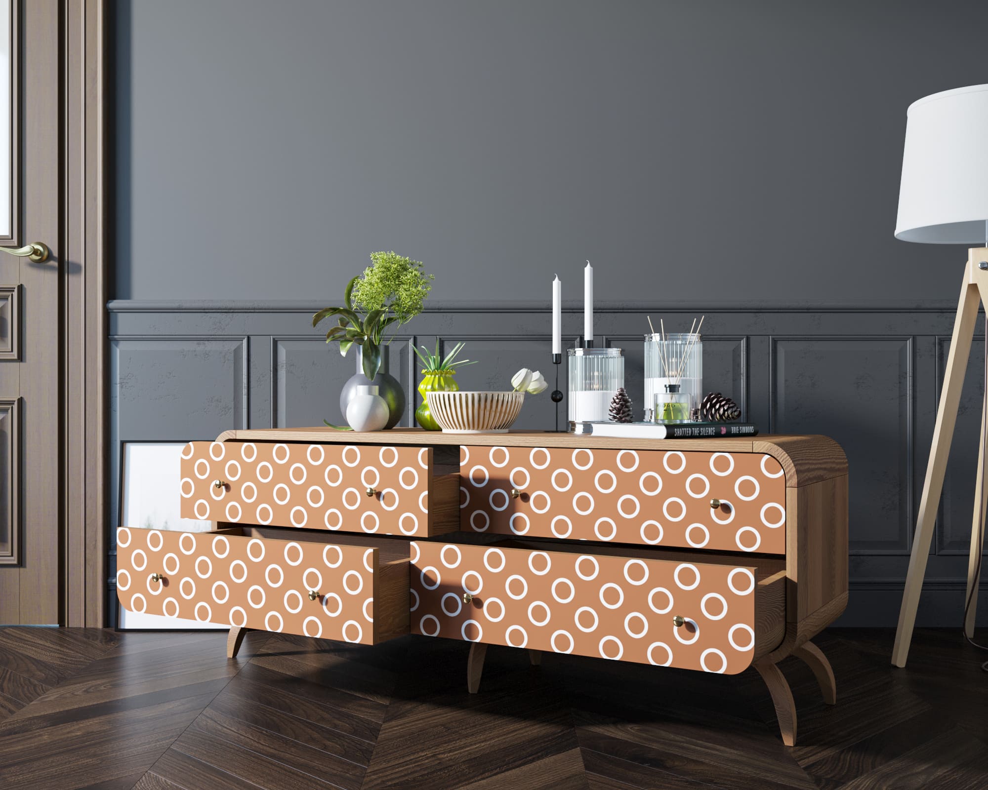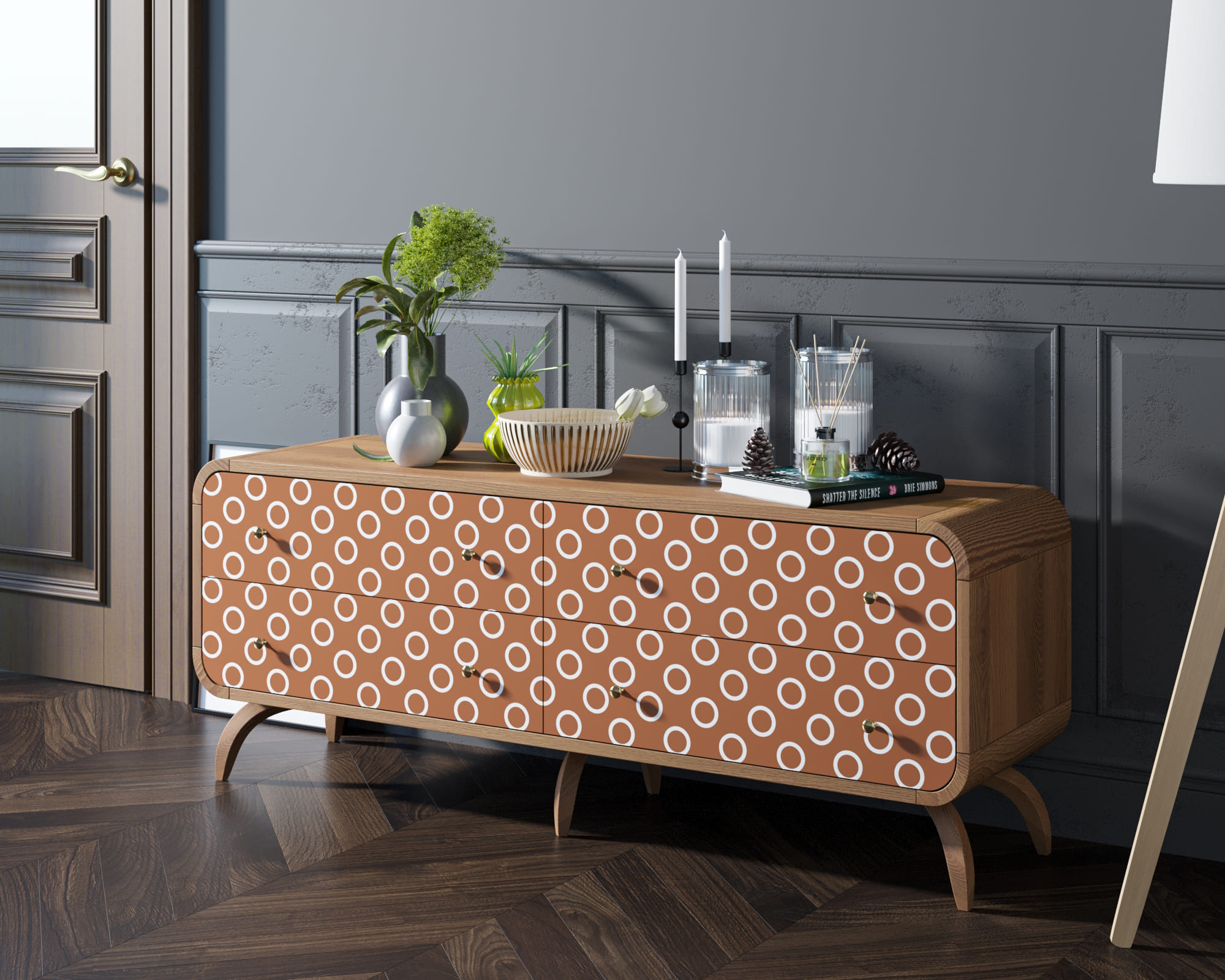 В этой коллекции вы найдёте комоды разных размеров: широкие, высокие и низкие. Все они имеют необычный дизайн с закруглёнными формами и фасадами с принтами. У изделий нет прямых углов, что придаёт им особый шарм.
