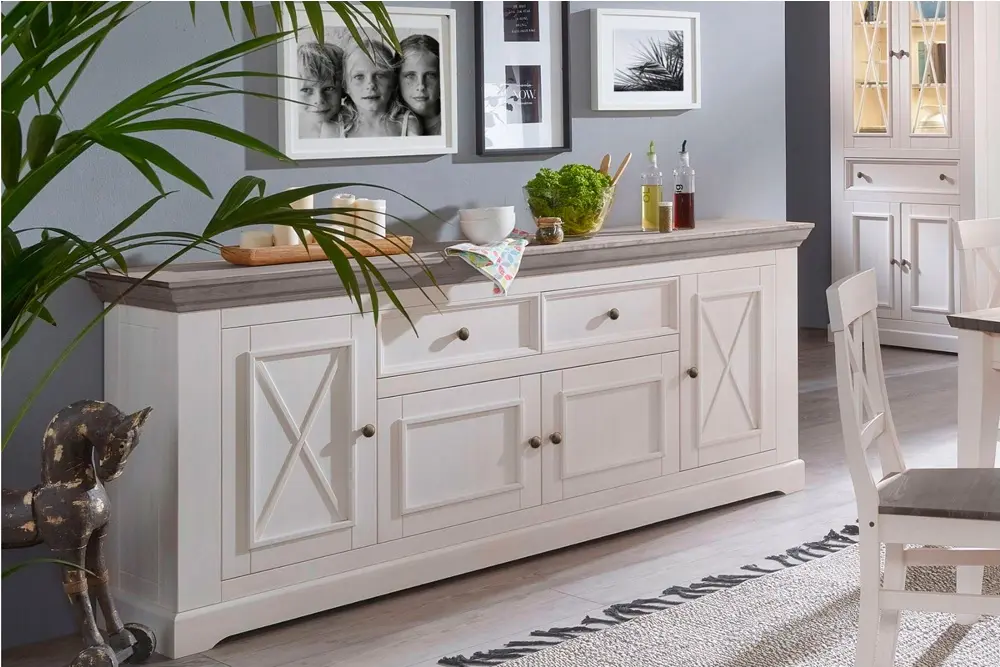 Комод Форест 4-дверный с 2-я ящиками белый воск/серый