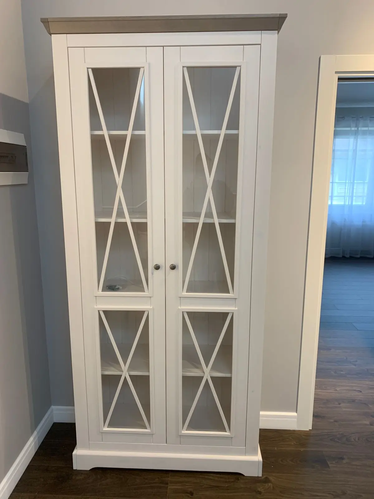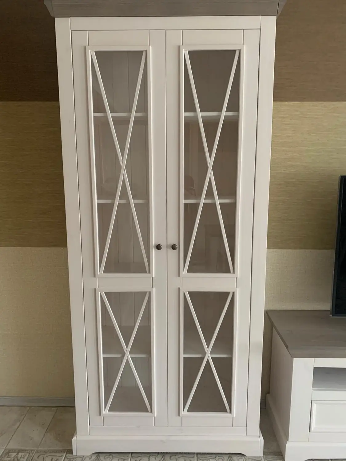 Витрина «Форест» имеет две двери со стеклом. За дверями находятся 4 полки, которые переставляются по высоте. Глубина полок составляет 330 мм, расстояние между полками — 372 мм. На полках можно разместить вашу библиотеку, хрустальные бокалы, чайный сервиз, дорогие сердцу фотографии в красивых рамках, памятные сувениры из разных приятных поездок или ваше хобби. Конструкция витрины позволяет поставить несколько изделий в ряд без зазоров, как показано на одной из фотографий.