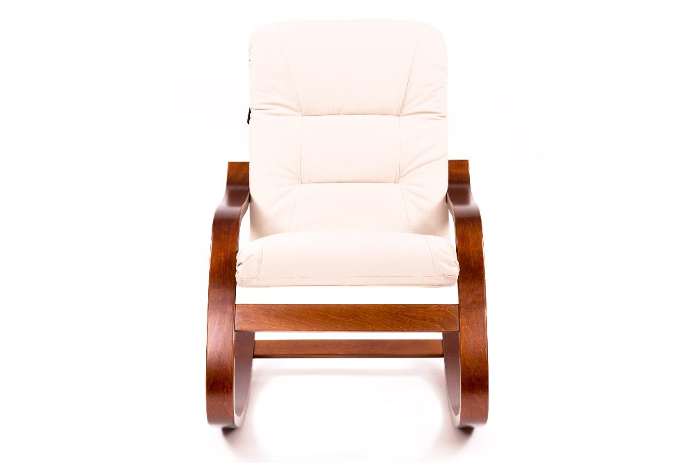 Кресло-качалка с обивкой из искусственной кожи цвета Бежевый и каркасом цвета Вишня