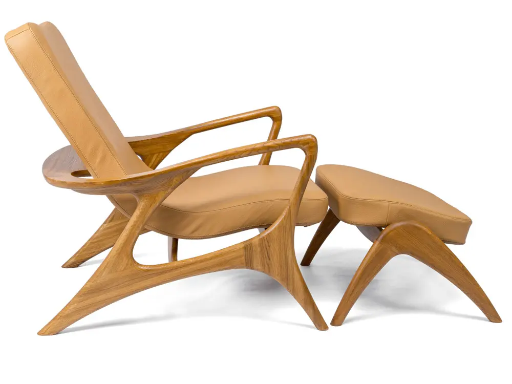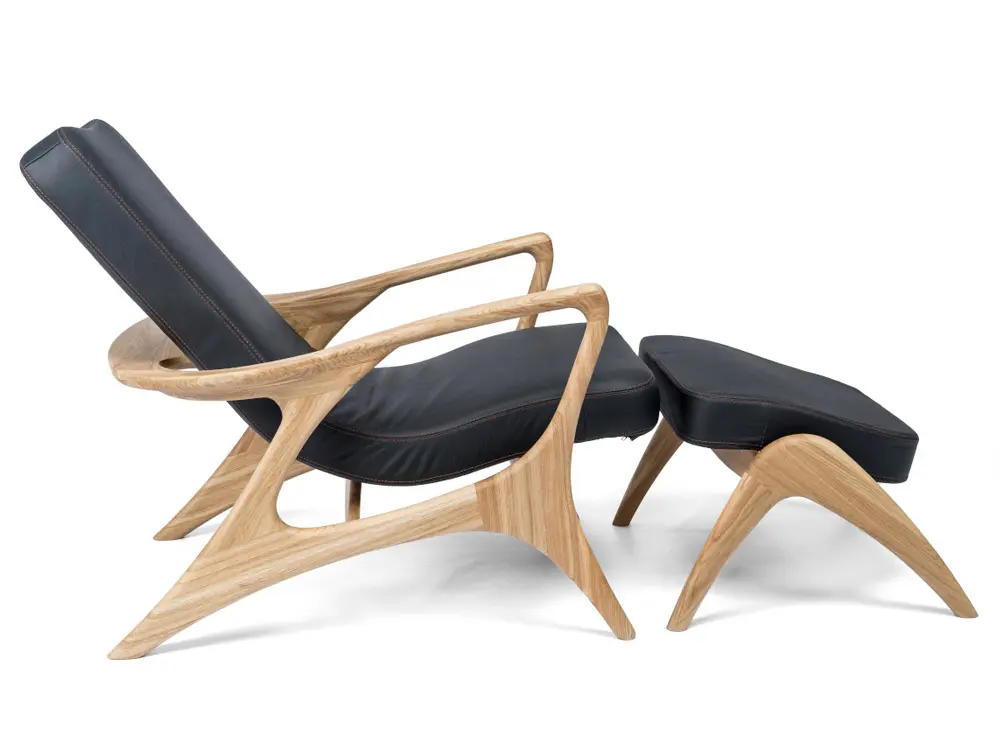 Подставка массив дуба для ног для кресла из массива дуба для отдыха с мягким элементом из искусственной кожи.