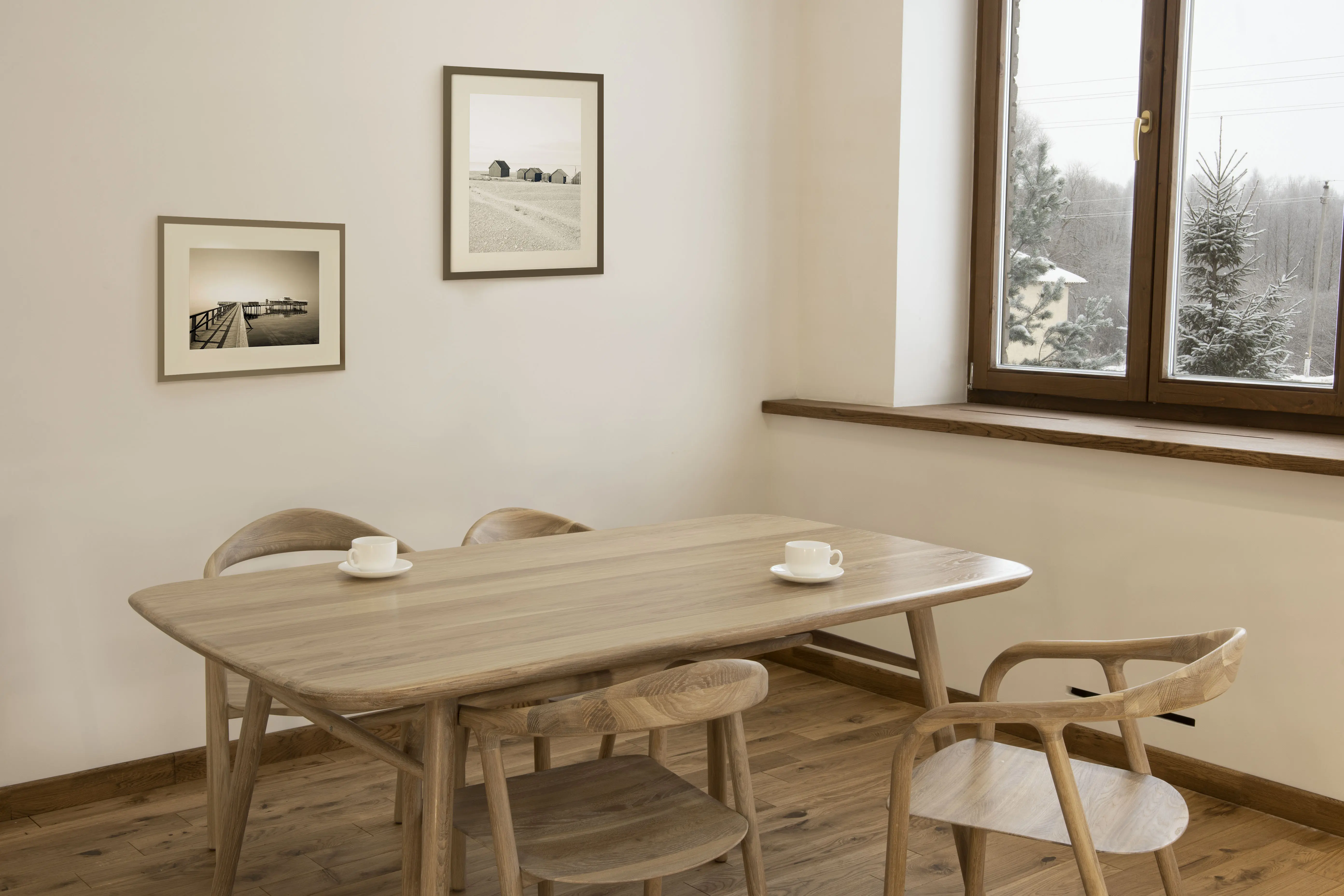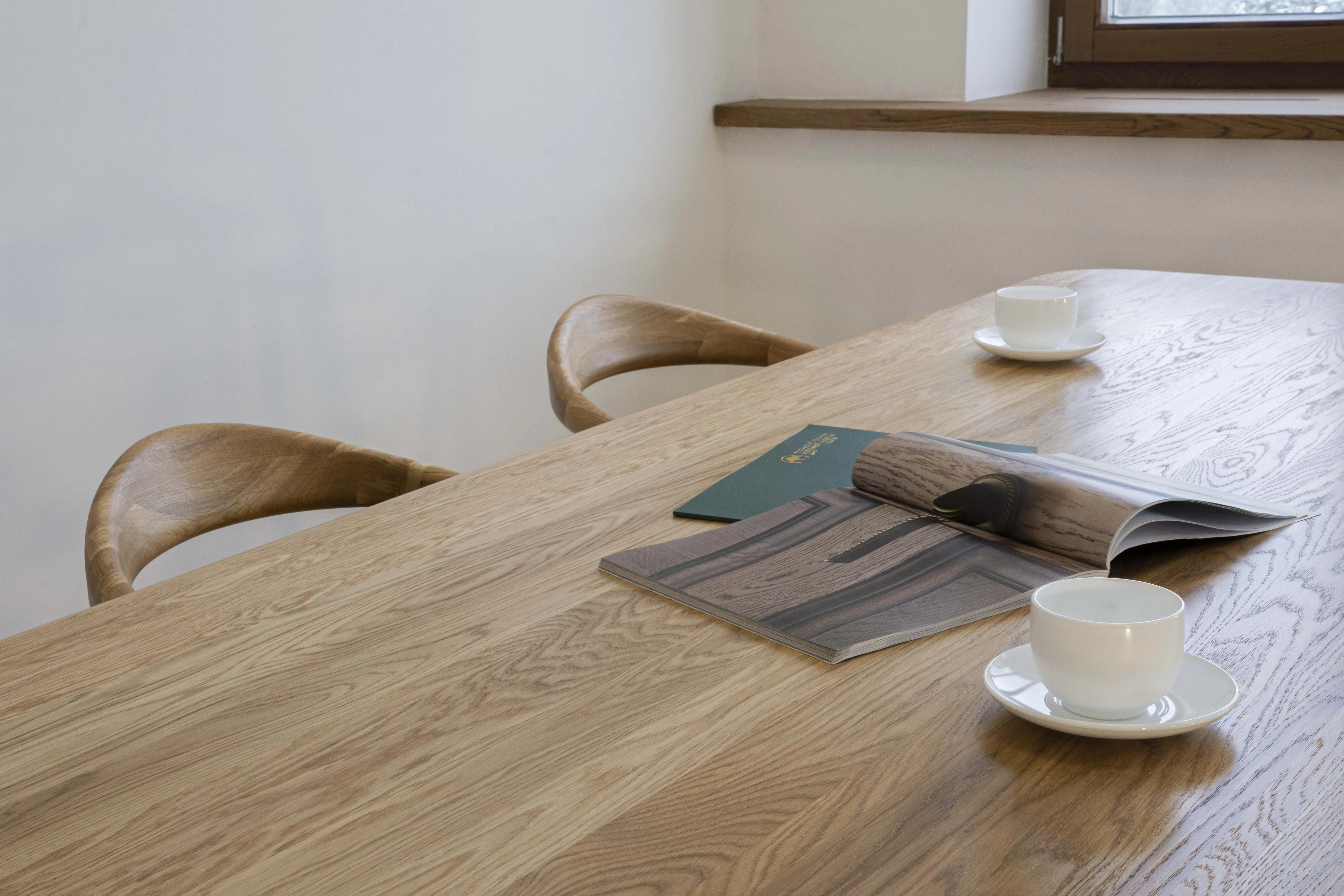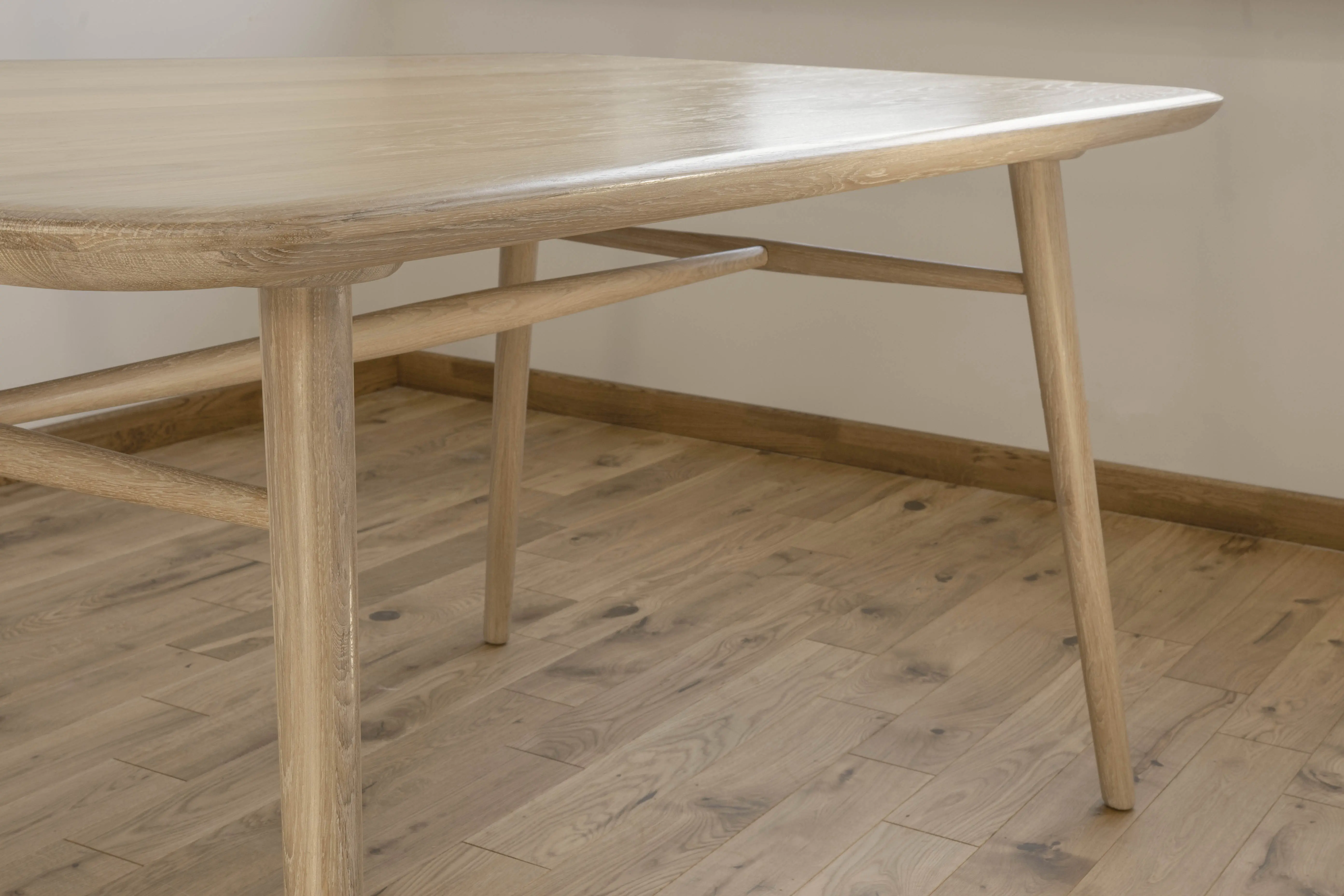 Большой обеденный стол из массива дуба со скругленными углами на 2,0 метра длиной.