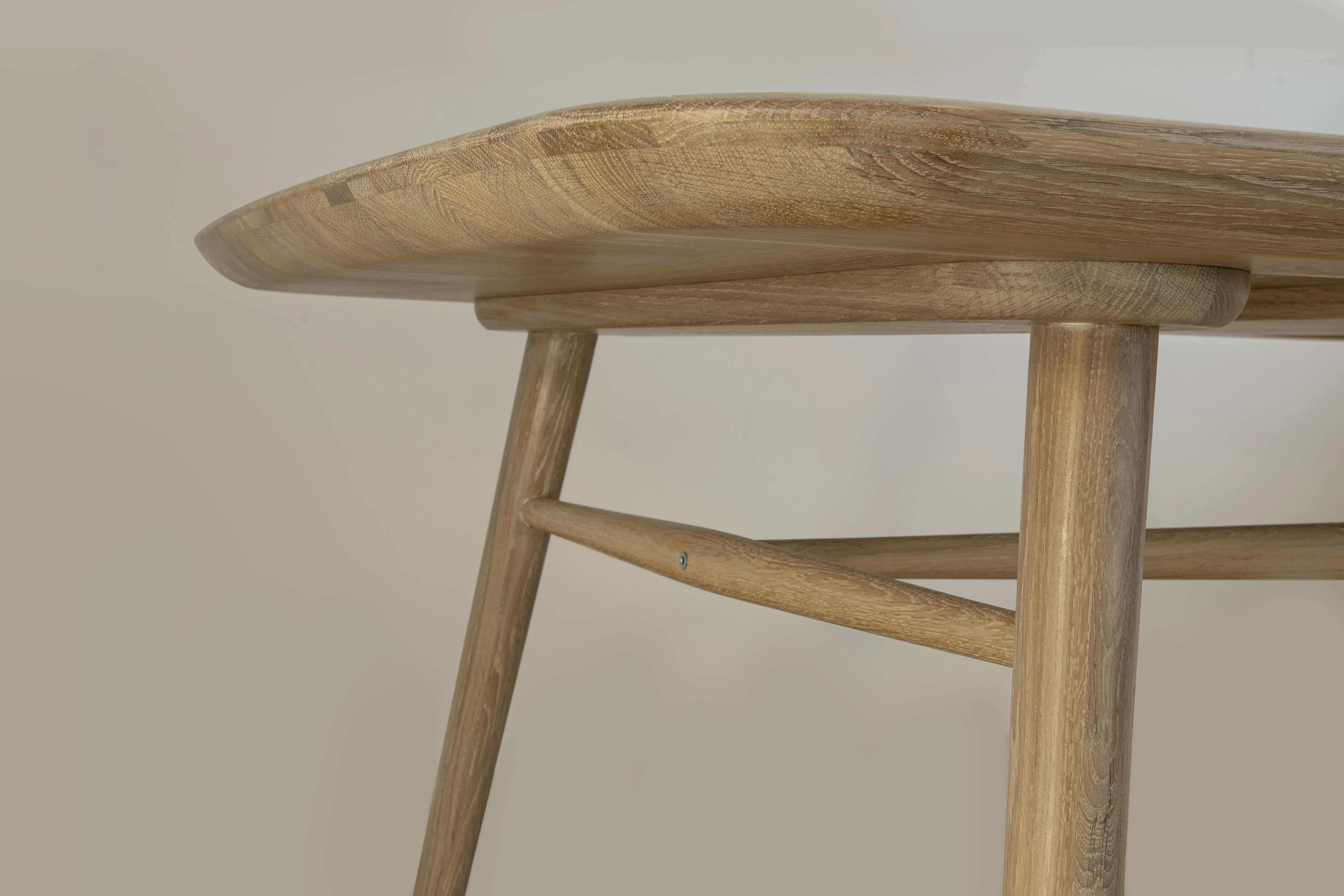 Стол выполнен из сращенного щита 100% массива дуба, сверху шпон.