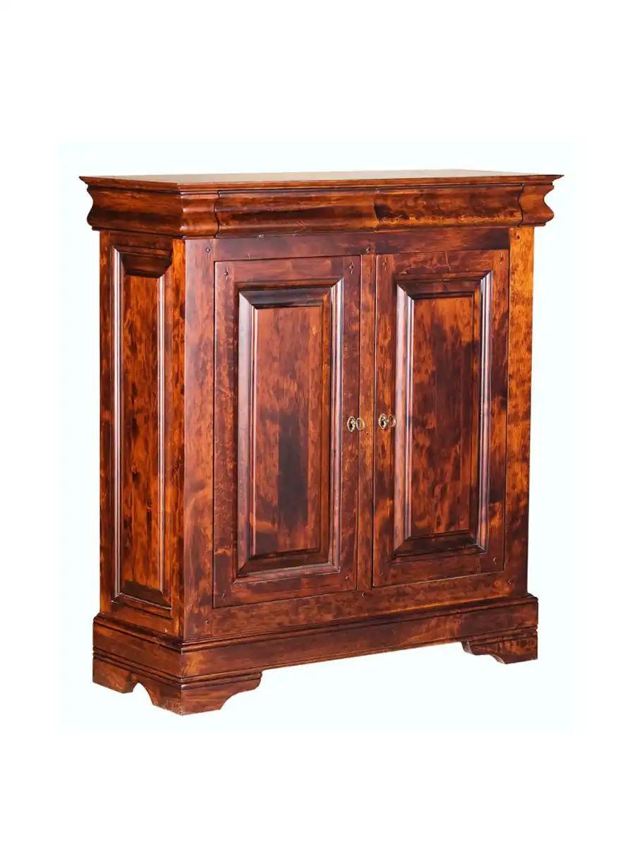 Двухдверный комод «Луи Филипп ОВ 05» выполнен в классическом стиле, изготавливается из массива ольхи или дуба и может быть окрашен в любой цвет по RAL, на выбор. Комод имеет высокий рельефный карниз и низкие устойчивые ножки.
