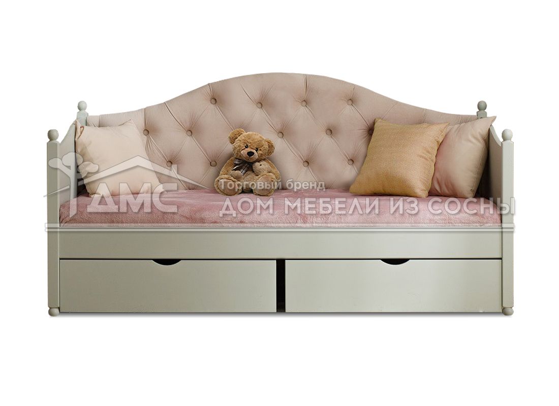 В качестве декора и функционального элемента модели выступает каретная стяжка. Она придаёт кровати элегантный вид и делает её более привлекательной для детей.