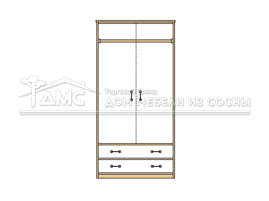 Удобство использования. Шкаф оснащён перекладиной для одежды и выдвижными ящиками, что делает его удобным в использовании.
