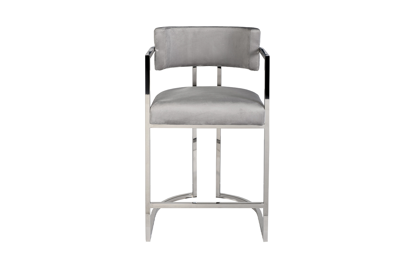 76AR-60337 Стул полубарный велюр серый/хром 52*55*91см