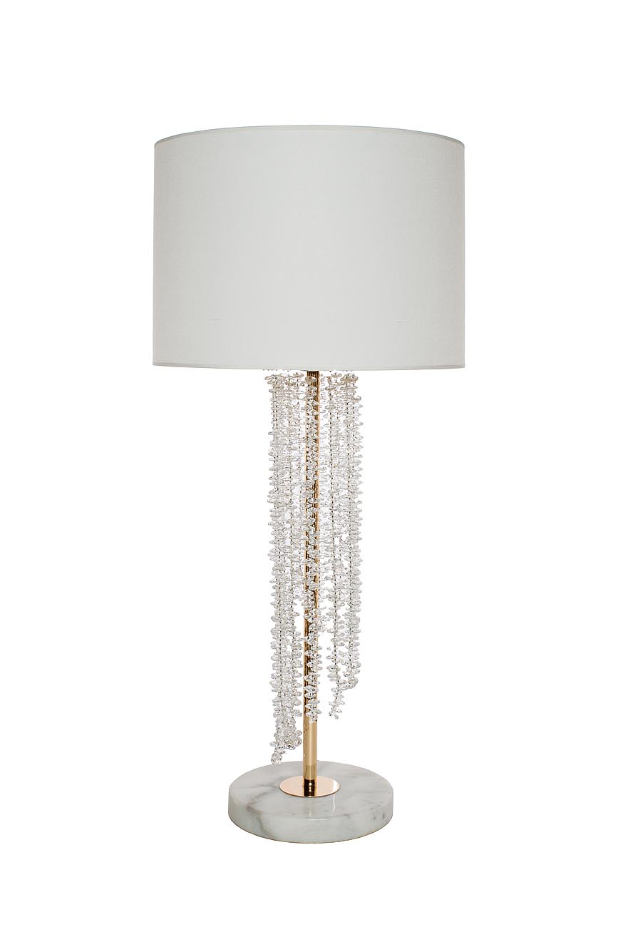 Создателей дизайнерской настольной лампы вдохновляли загадочные и прекрасные морские обитатели - медузы. Длинные ассиметричные подвески-"щупальца", созданные из сотен прозрачных кристаллов, спускаются каскадом из центра изящного абажура молочно-белого цве...