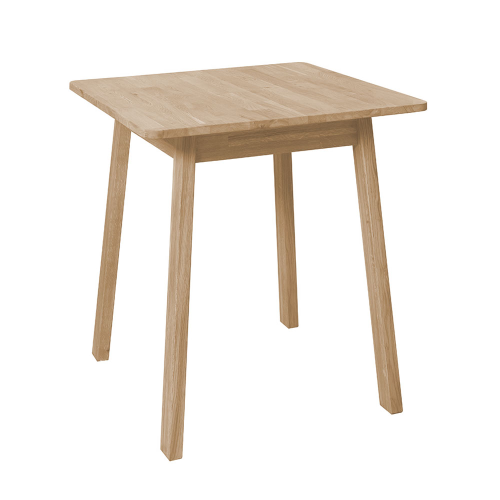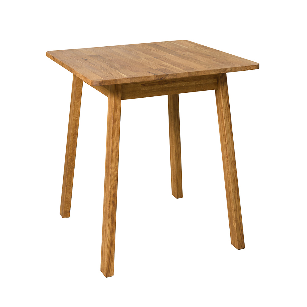 Стол нераздвижной, имеет высокие тонкие ножки. Доступно шесть вариантов отделки, на выбор: бейц-масло, дуб отбеленный, дуб паркетный, дуб венге, темная вишня, итальянский орех. Размеры стола 750х750х750 мм, вес 19 кг. Поставляется в разобранном виде. Гарантийный срок – 1 год.