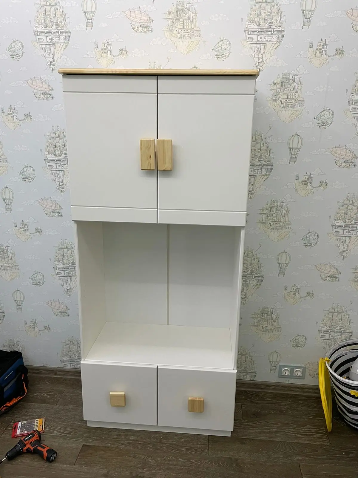 Ручки по выбору — деревянные кнопки (по умолчанию, на фото), кружки, квадраты, сердечки, запилы.