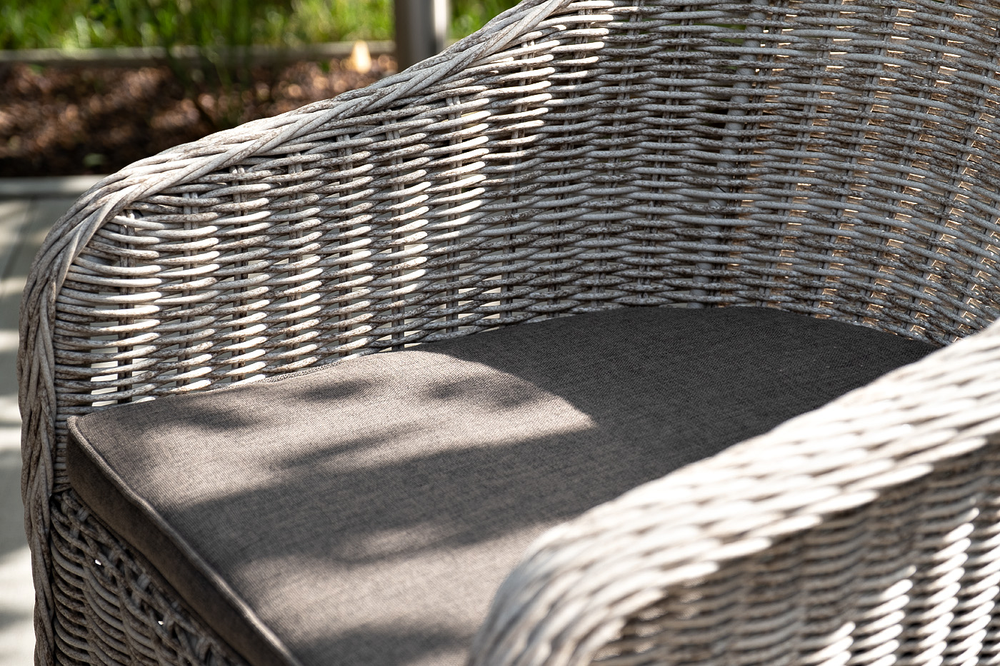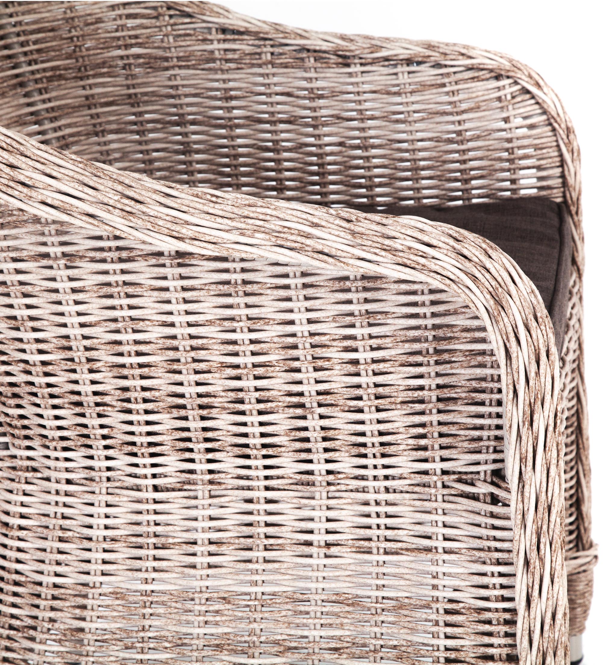 Кресло из искусственного ротанга из коллекции "Равенс" сочетает в себе домашний уют, современный стиль и природные мотивы. Размеры: 570×680×810 мм. Кресло изготовлено вручную. Каркас алюминиевый, а сверху он оплетен круглым искусственным ротангом бежевого оттенка. В комплект включена мягкая подушка серо-коричневого цвета. Благодаря такой расцветке кресло идеально вписывается в любой интерьер, а также сочетается с другой мебелью, выполненной в натуральных оттенках. Дизайнерское кресло подойдет и для помещений, и для эксплуатации под открытым небом.