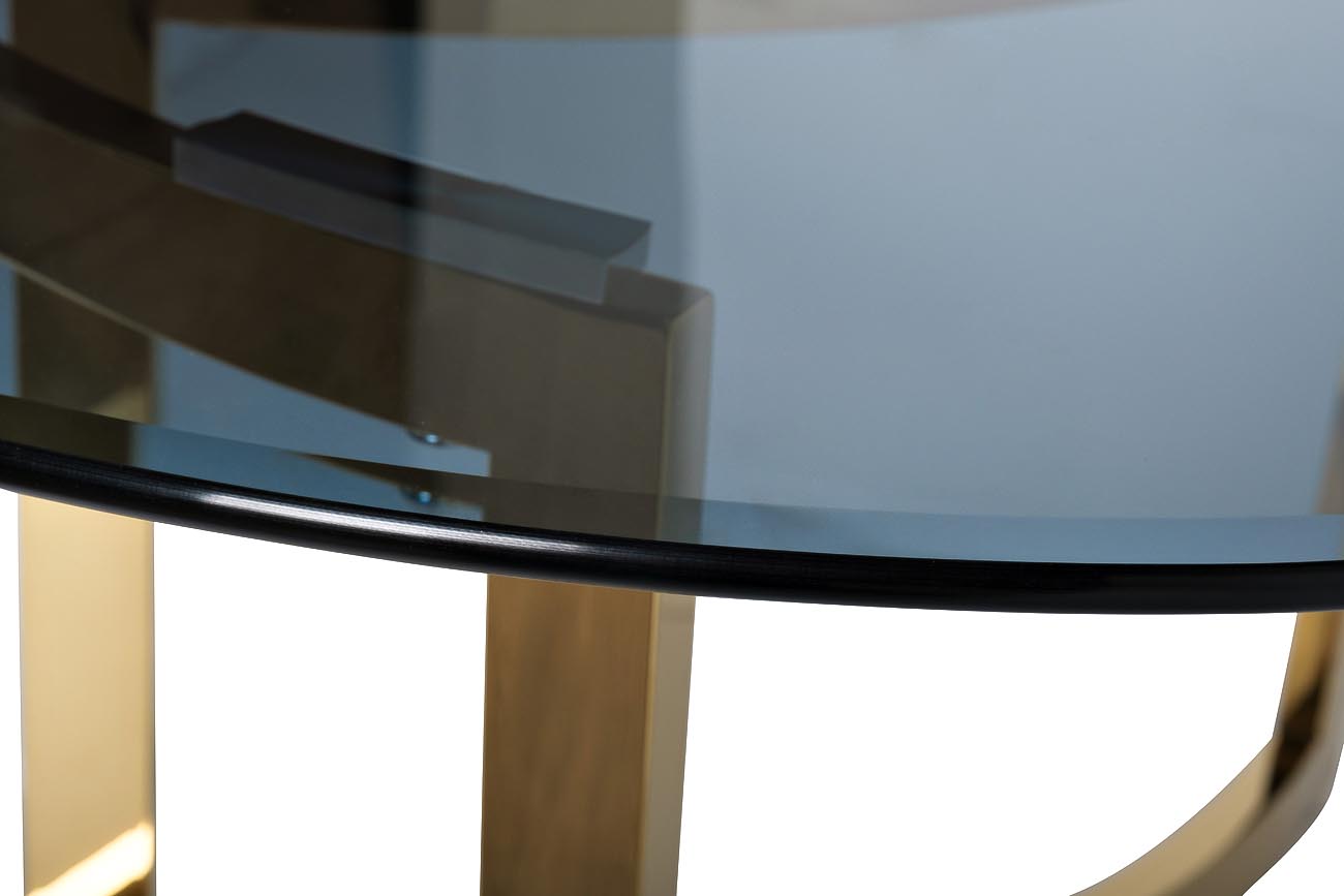 - Материал: основание - нерж.сталь цвет золото, столешница - закаленное стекло темное