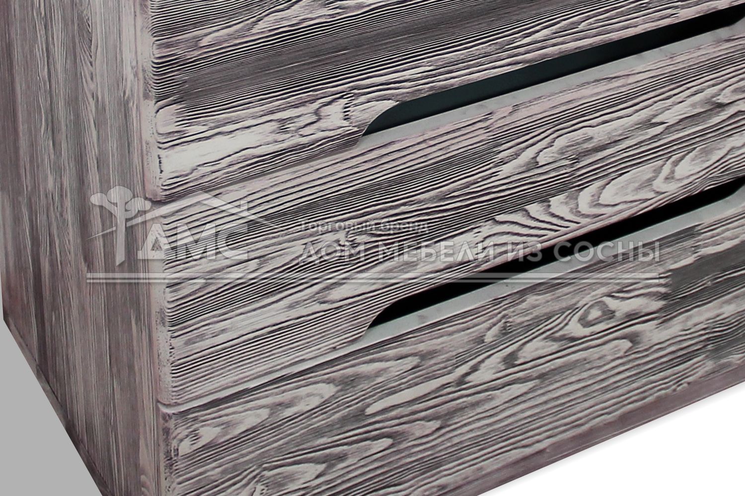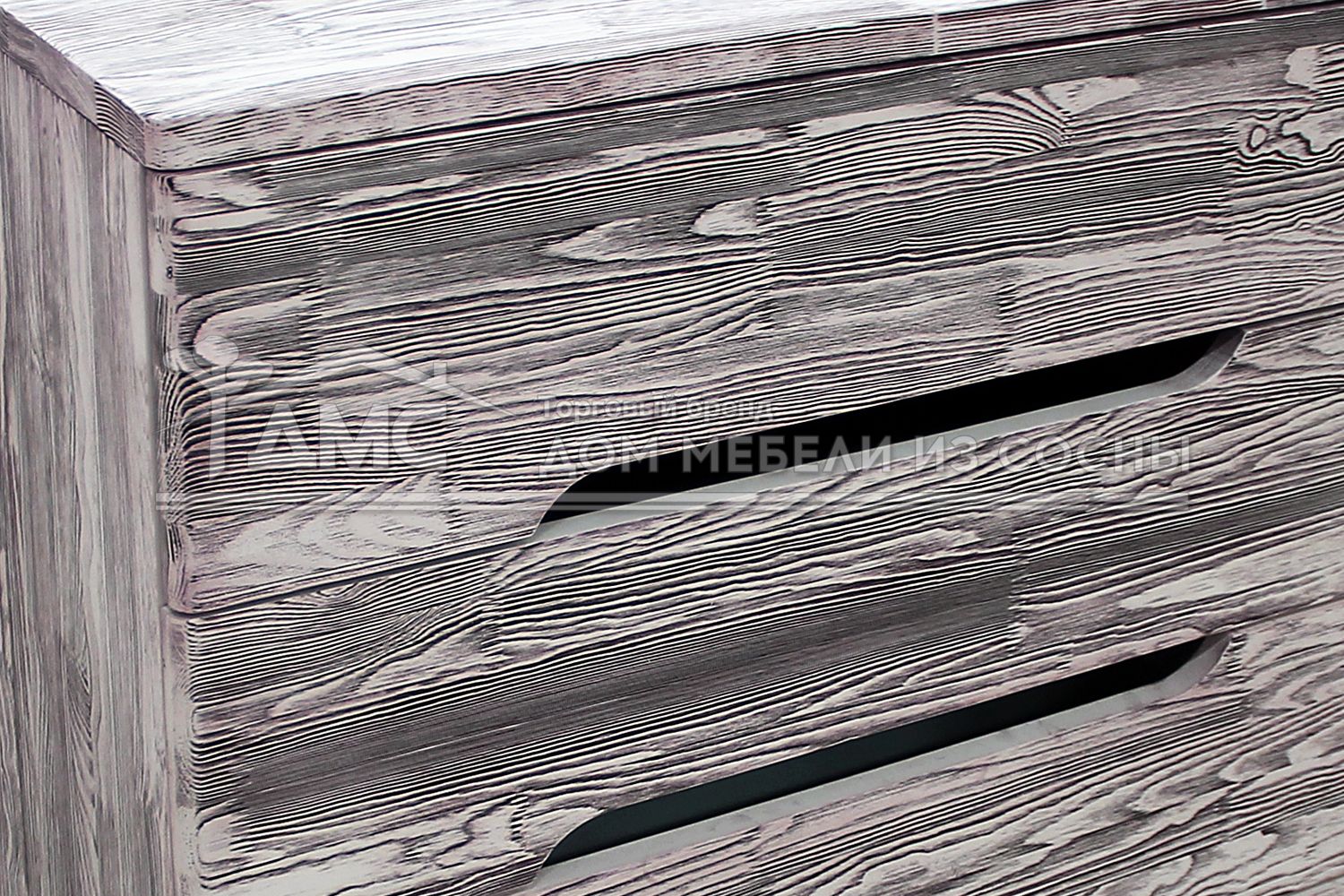 Дизайн комода «Веста» простой и лаконичный, а способ окрашивания у модели на фото крайне необычен. Благодаря этому комод выглядит современно и интересно. Вы можете выбрать оттенок древесины самостоятельно, чтобы комод гармонично вписался в ваш интерьер.
