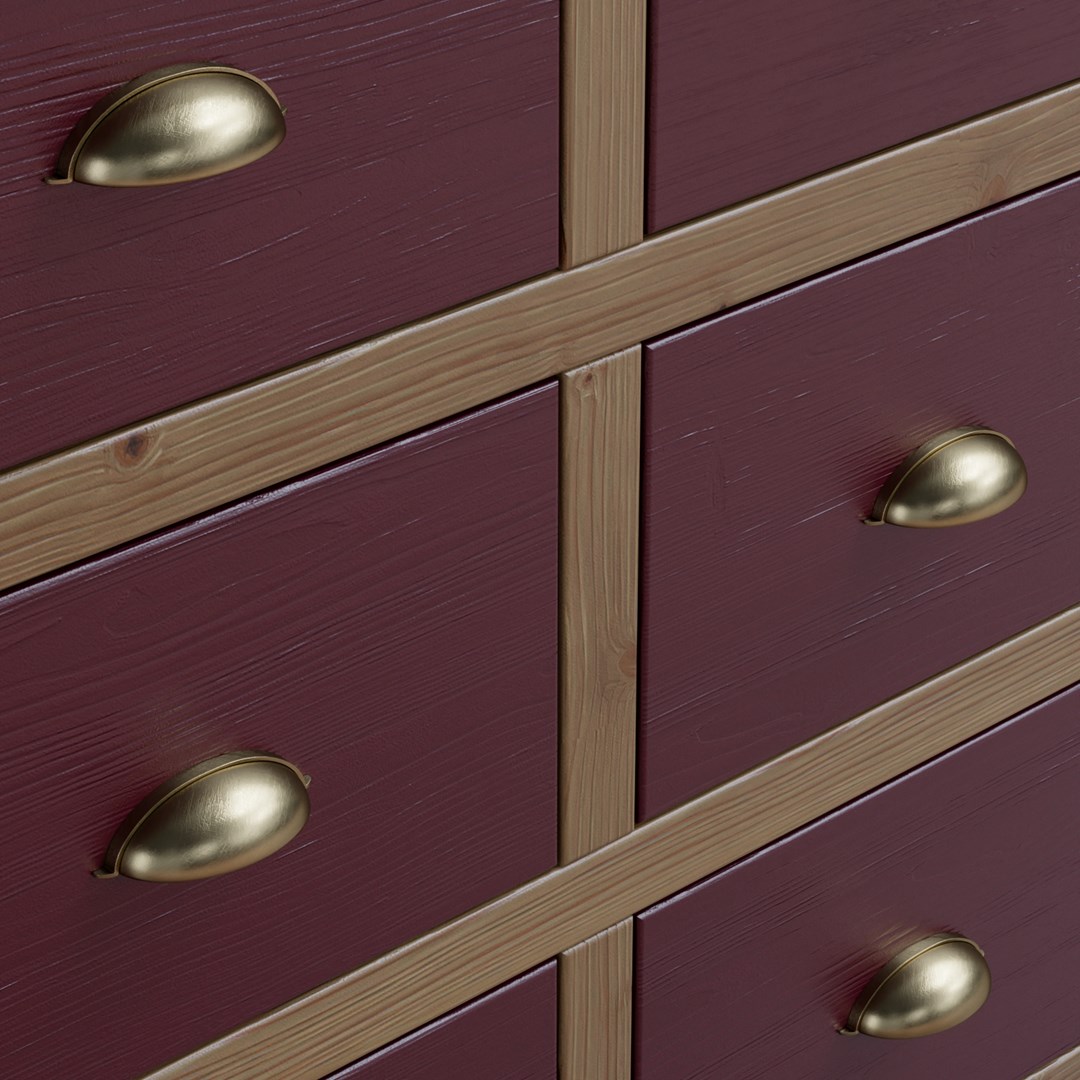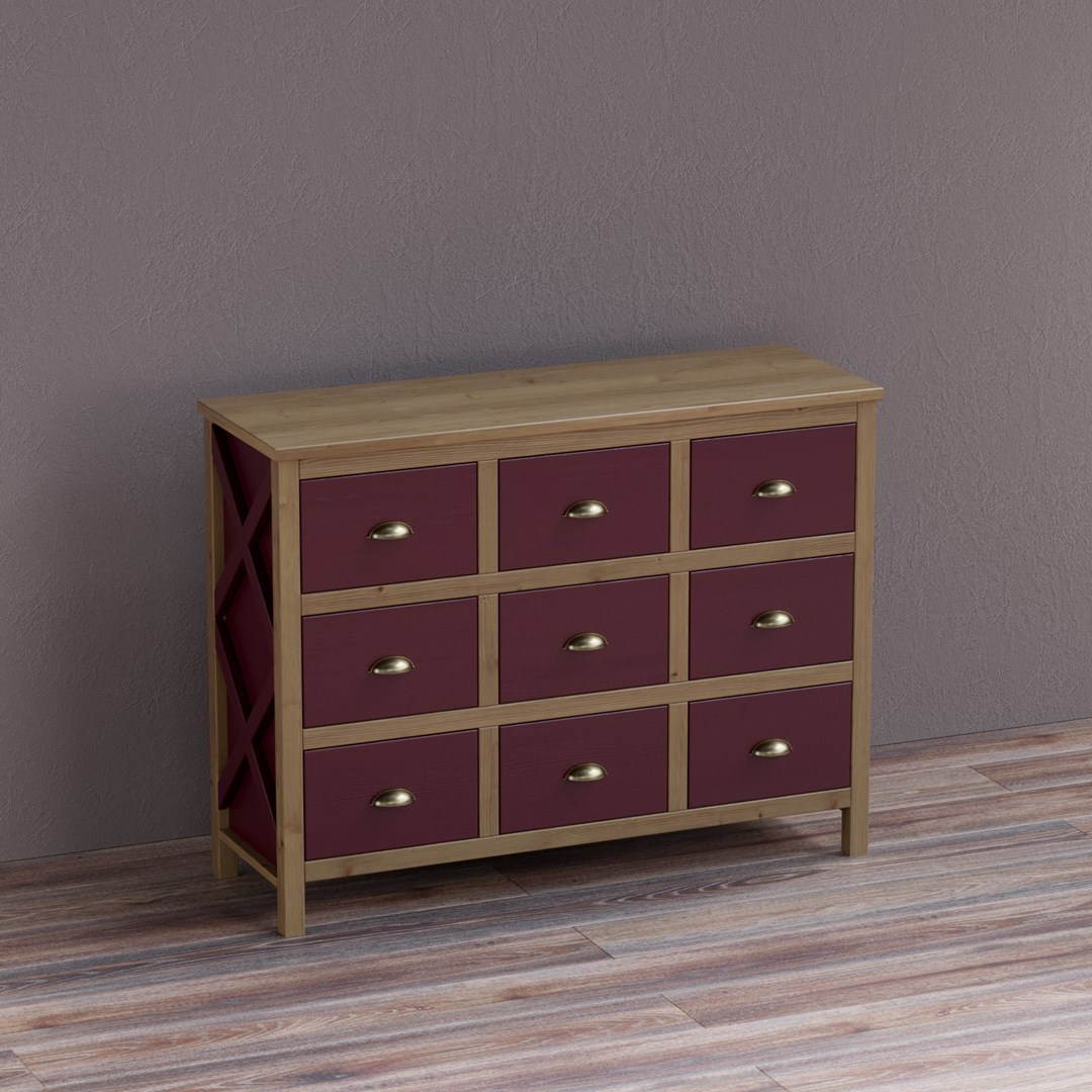 Цена указана за изделие в бесцветном лаке Комод Армо, выполненный из массива сосны, помогает окрасить интерьер в гармоничные цвета и создает в комнате атмосферу свежести и домашнего уюта. Комод позволяет решить сразу две задачи: декорирование пространства и функциональное размещение всех Ваших вещей, ведь он оснащен 9 ящиками разных форм.