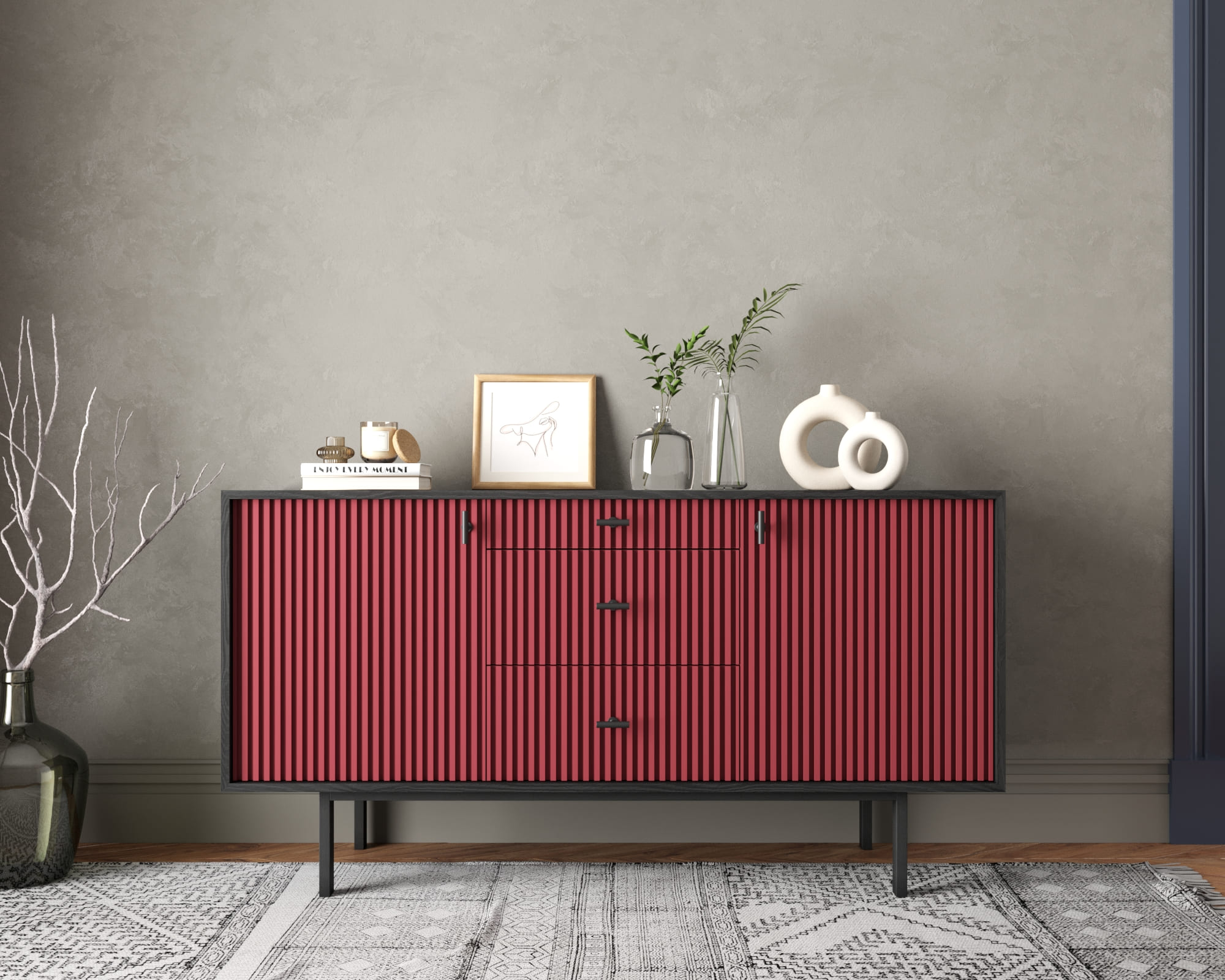 Комод две дверки и три ящика "Emerson" арт EM08/red/L