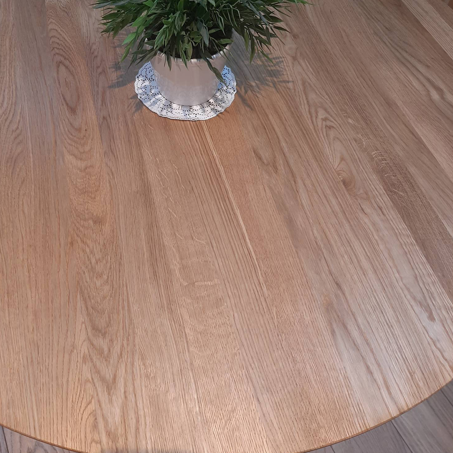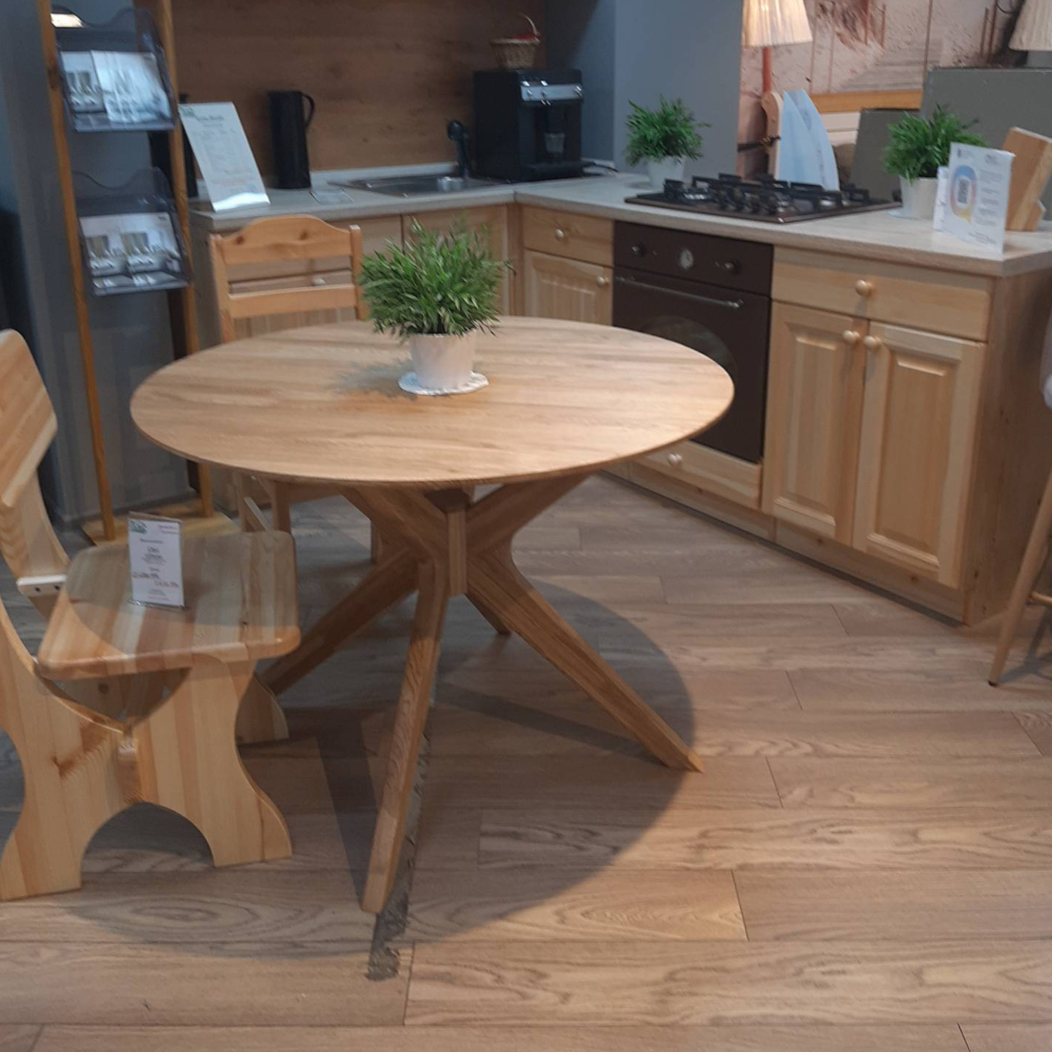 Обеденный стол «Раунд 4» изготавливается из долговечного природного материала – массива дуба. Стол отличается простым и стильным дизайном, а, главное, вместительностью – за ним могут разместиться 6-8 человек. Еще одно преимущество – устойчивые наклонные опоры.